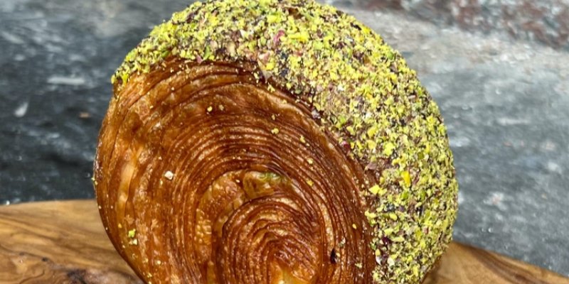 At this bakery, I had a pistachio brioche bun, a Berliner doughnut, and a cruffin. They sold lots of creative pastries here — ones I had never seen or even heard of before.